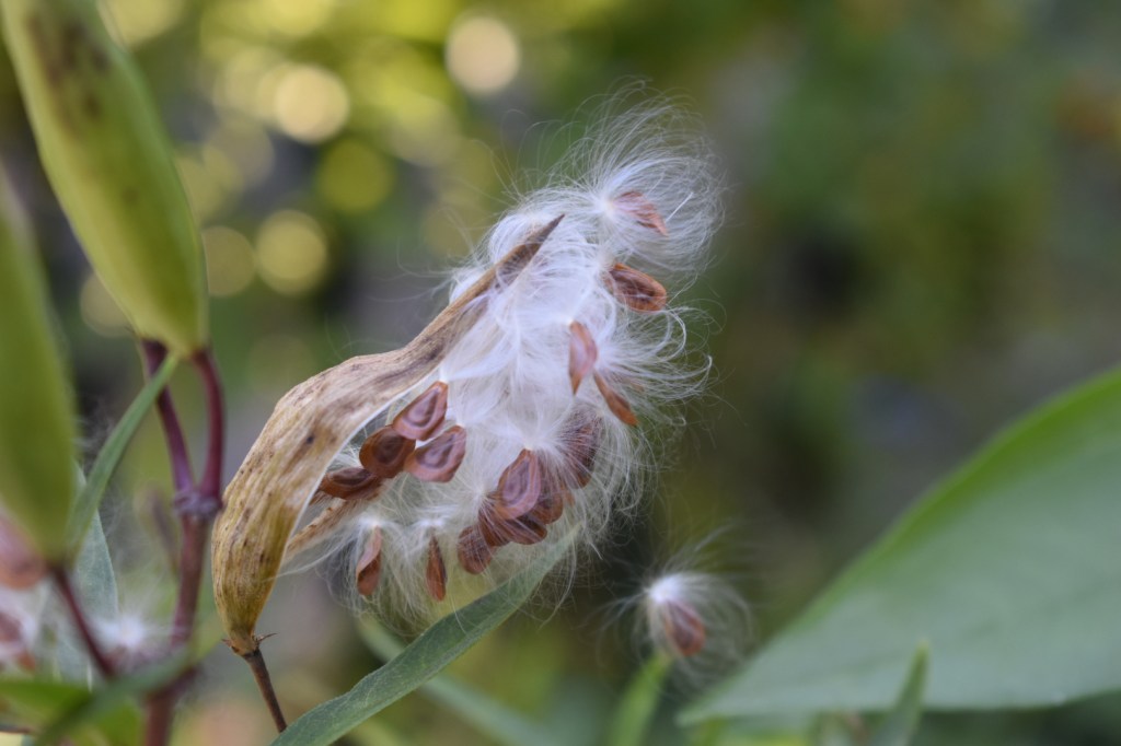 - The milkweed plant shown here provides complex benefits– from foliage to flowers to seed–for many levels of the food chain. So even though it flowers only a short time in late summer, its benefits are year-round, especially if seed heads are left in place at the end of the season.