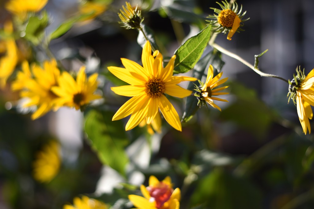 Sunchoke or Jerusalem Artichoke. Very low fuss plant that grows tall like sunflowers in late summer/early fall.